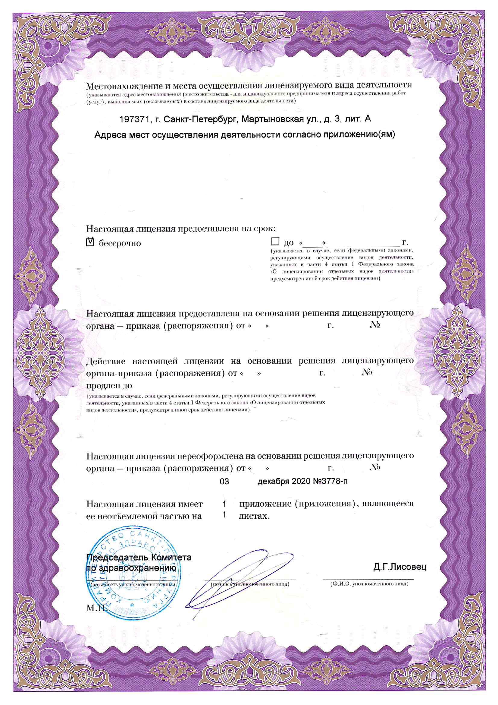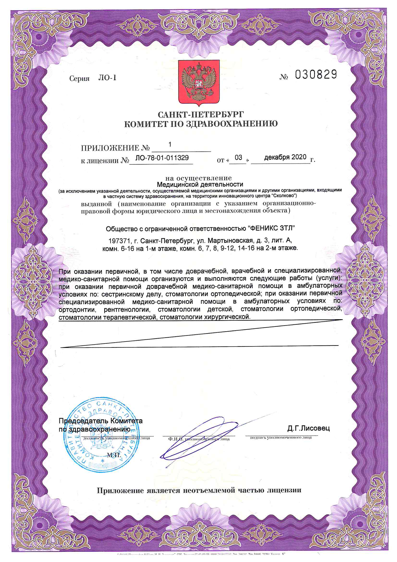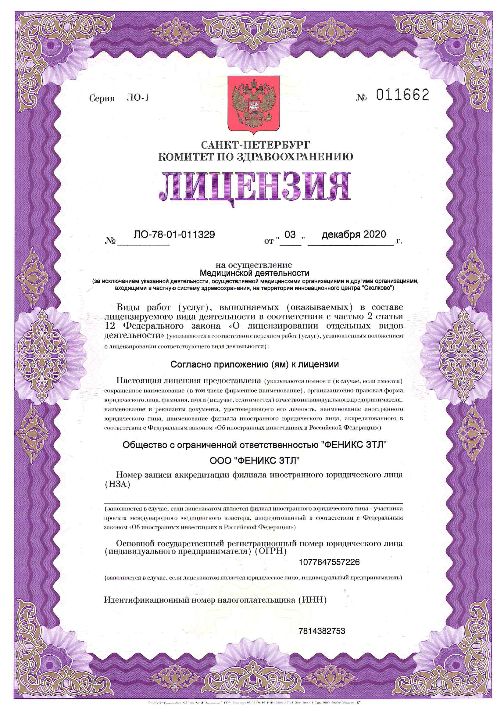Номер лицензии клиники в реестре учета лицензий (ЕРУЛ):
